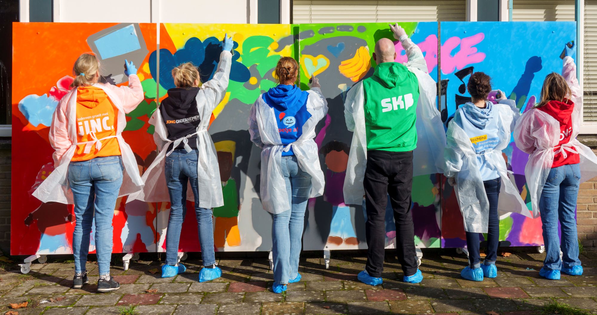 Vandaag hebben de leerlingen, de kunstenaar én de leden van het SKB samen het ontwerp ingekleurd en de visie van de leerlingen in beeld gebracht. Het resultaat is een kleurrijk kunstwerk dat symbool staat voor een inclusieve samenleving waar kansen voor alle jongeren binnen handbereik liggen.